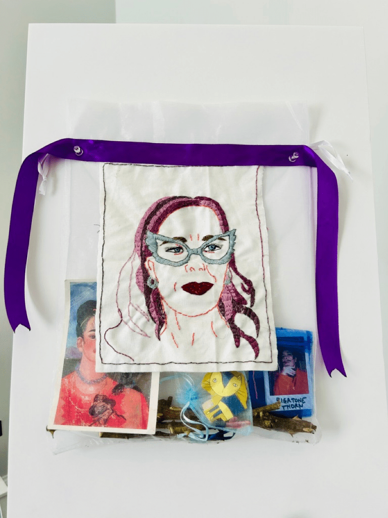 I have put two little cats and a toy vibrator in my power bags, to symbolise love, joy, beauty and pleasure which also give me power!
